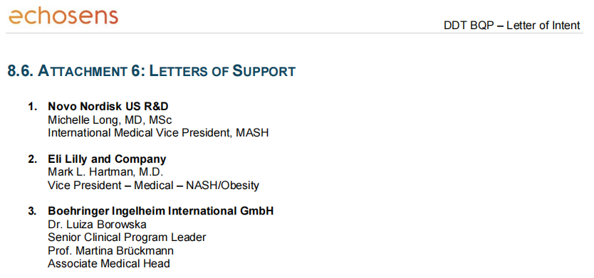 FDA此次對意向書的認(rèn)可具有里程碑意義,標(biāo)志著VCTE成為全球首個且目前唯一獲得FDA官方認(rèn)可、進(jìn)入MASH藥物研發(fā)工具資格認(rèn)證流程的無創(chuàng)檢測技術(shù)。這一決定主要基于FibroScan?在肝臟疾病藥物開發(fā)(尤其是MASH領(lǐng)域)中卓越的臨床驗(yàn)證與實(shí)際應(yīng)用表現(xiàn)。FibroScan?獲得了超過5600篇同行評議論文的有力支持,其中包括多項(xiàng)關(guān)鍵研究((Gawrieh et al., Journal of Hepatology, 2024, Lin et al., JAMA, 2024, and Mózes et al., Lancet Gastroenterol Hepatol, 2023),這些研究一致表明VCTE測量的LSM變化與肝臟相關(guān)臨床結(jié)局具有顯著相關(guān)性。在Echosens提交至FDA的申請材料中,還包括了禮來、勃林格殷格翰和諾和諾德等國際領(lǐng)先藥企的官方支持函,進(jìn)一步鞏固了其行業(yè)權(quán)威性與認(rèn)可度。