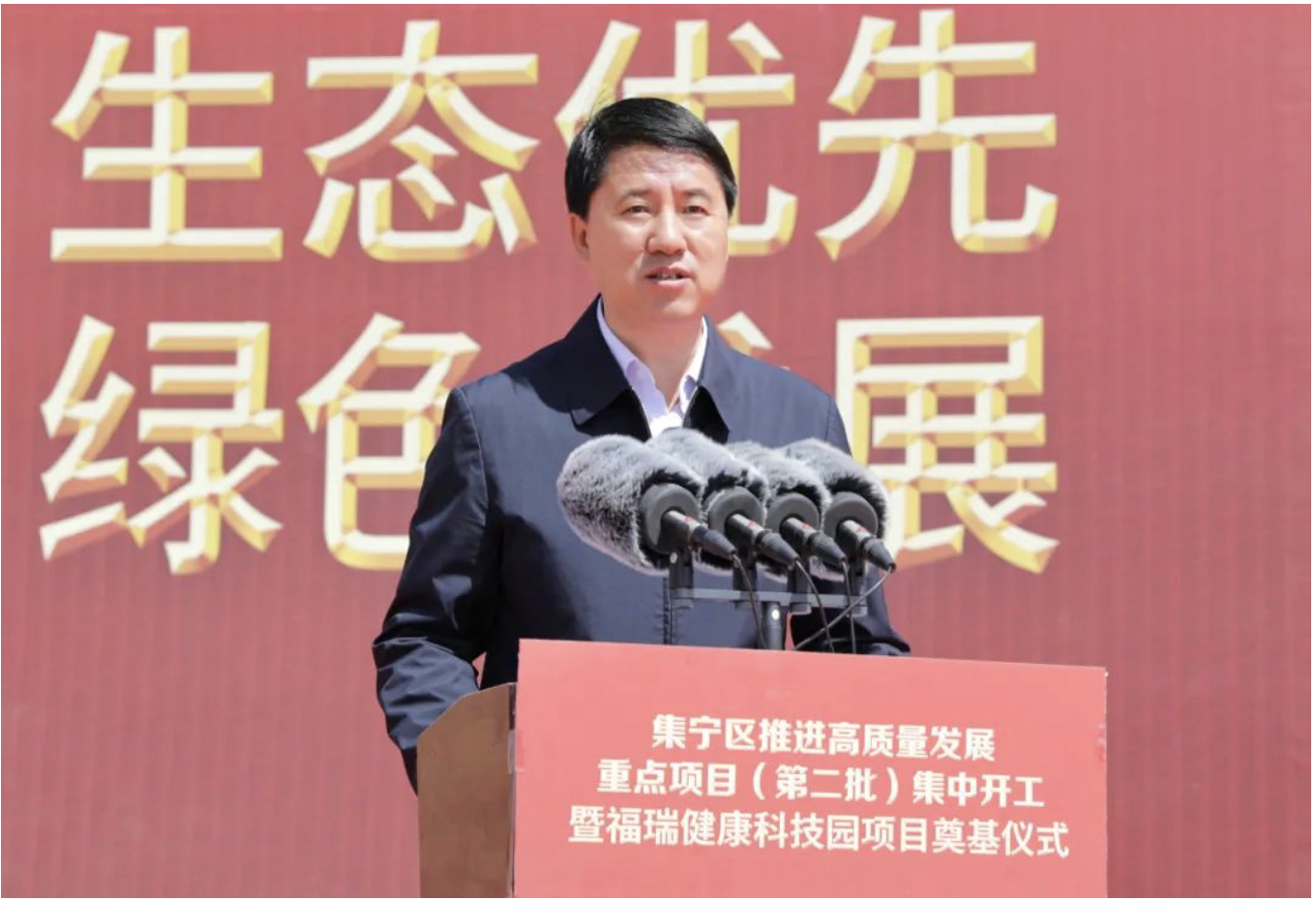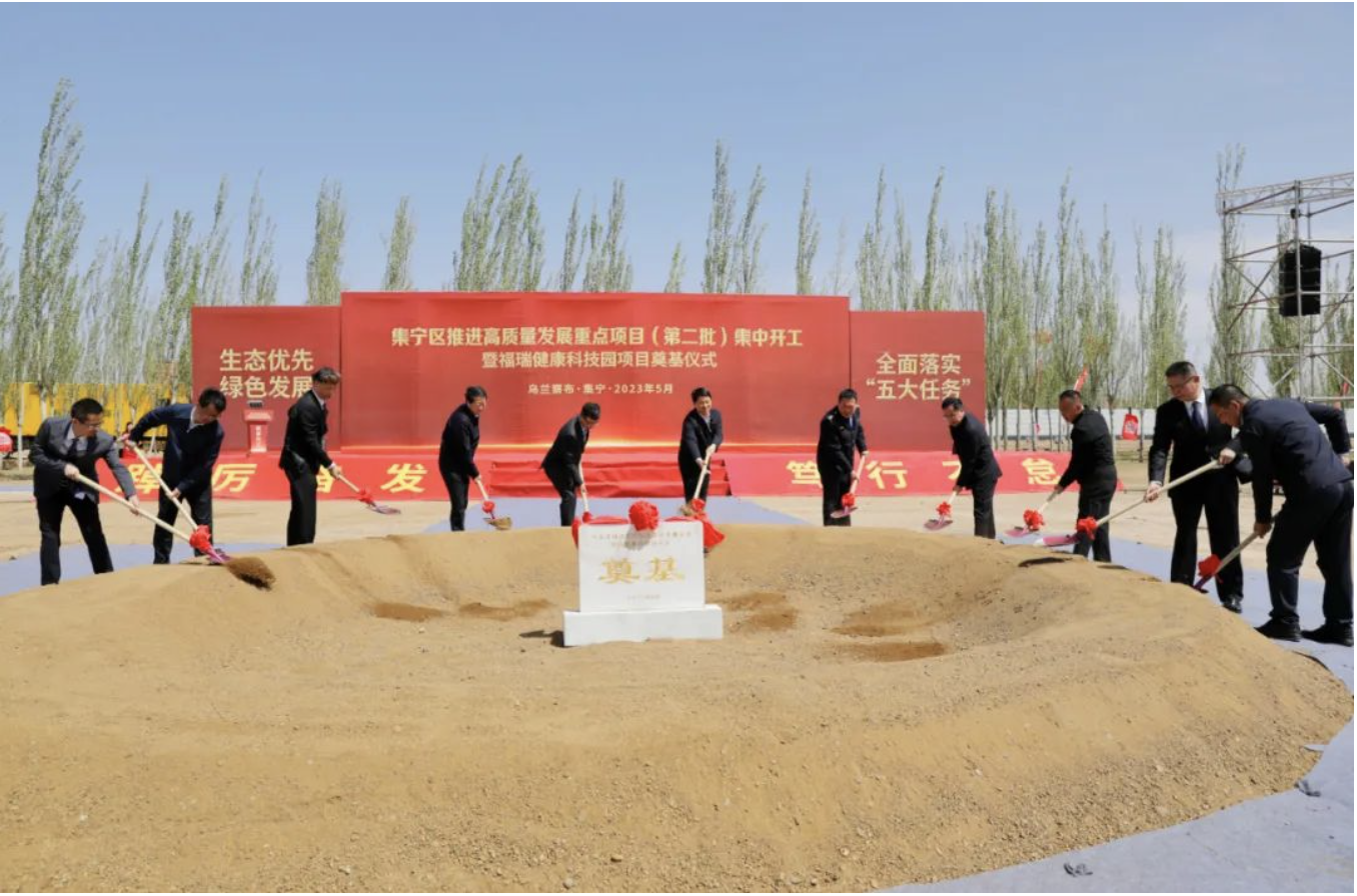 5月15日上午,集寧區(qū)舉行推進(jìn)高質(zhì)量發(fā)展重點(diǎn)項(xiàng)目(第二批)集中開工暨福瑞健康科技園項(xiàng)目奠基儀式。(圖/郭文婕)